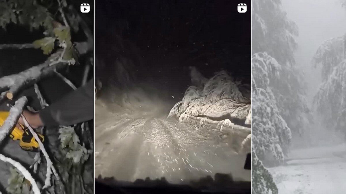 Na društvenim mrežama pojavile su se snimke koje svjedoče o posljedicama prvog ovosezonskog snijega. U okolici Ivanjice drveće se pod težinom snijega rušilo na ceste, zbog čega je promet bio blokiran. Na videosnimci objavljenoj na Instagram stranici info_liga_mediatim vidi se kako građani sami uklanjaju srušeno stablo kako bi oslobodili prolaz.