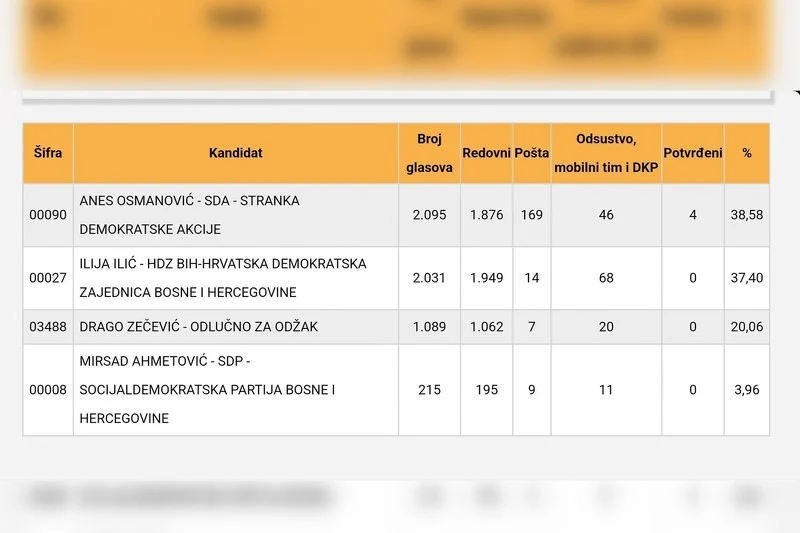 Kandidat za načelnika Odžaka Anes Osmanović (SDA) je nakon posljednjeg ažuriranja rezultata izbora na stranici Centralne izborne komisije preuzeo vodstvo.