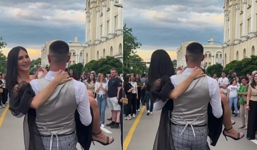 Naime, na Instagramu je objavljen snimak u kojem jedan od maturanata u rukama nosi svoju pratilju.