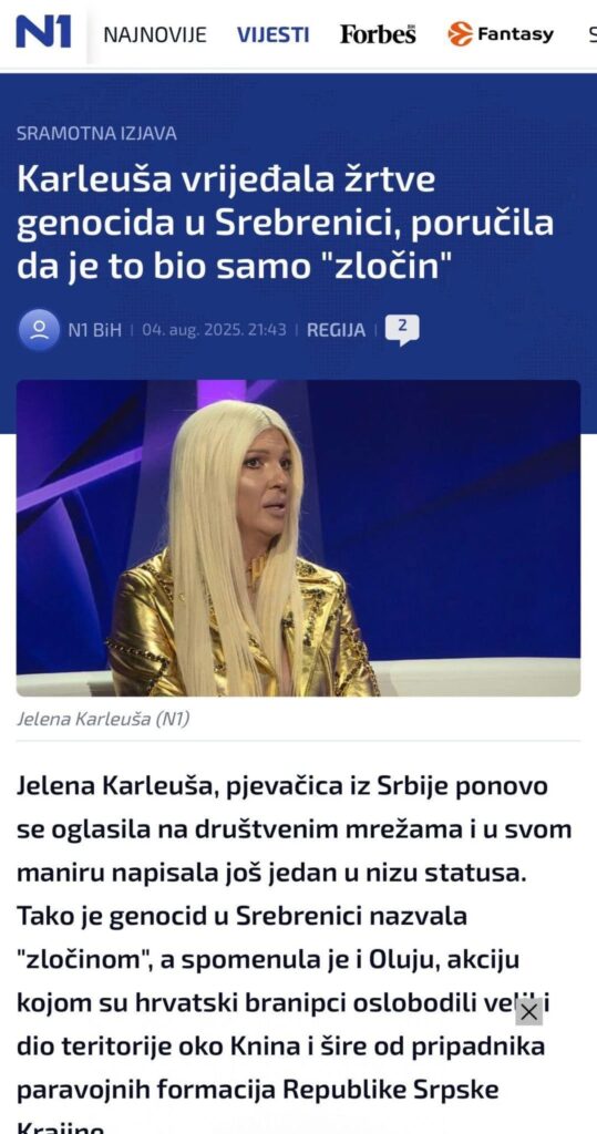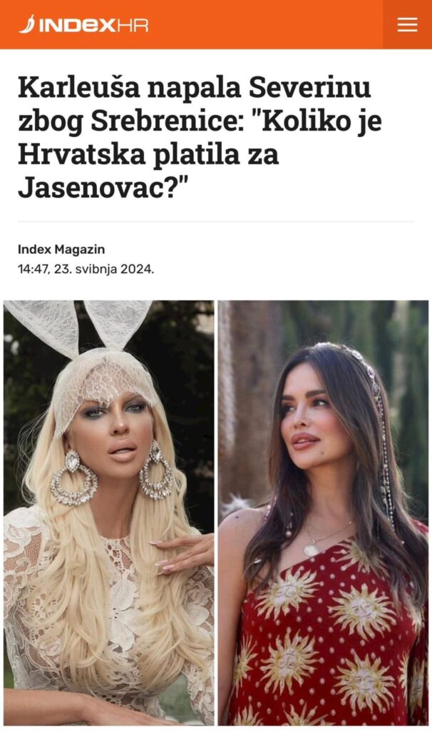 Konaković je u svojoj objavi istaknuo kako Karleuša ne samo da negira genocid, već aktivno sudjeluje u progonima onih koji o tome govore, podsjetivši na njezine nedavne sukobe s hrvatskom pjevačicom Severinom upravo zbog te teme.