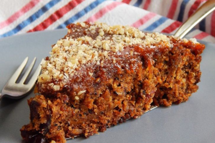 Pecite u rerni prethodno zagrijanoj na 180 stepeni oko 35 minuta, a kada je kolač gotov, vrućeg ga premažite džemom od kajsija (ako je džem gust, možete ga prethodno zagrijati) i pospite mljevenim orasima.