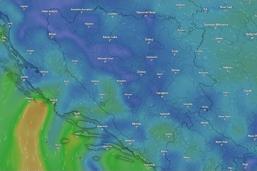 ”Na jugu Hercegovine sunčanije. U Bosni se očekuje kiša, a na planinama slab snijeg. Na jugu i jugozapadu umjerena do pojačana bura, a u ostatku zemlje slab do umjeren sjeverni i sjeveroistočni vjetar. Jutarnja temperatura zraka od 2 do 8, na jugu do 14, a dnevna od 6 do 12, na jugu do 18 °C”, kažu iz FHMZ-a.