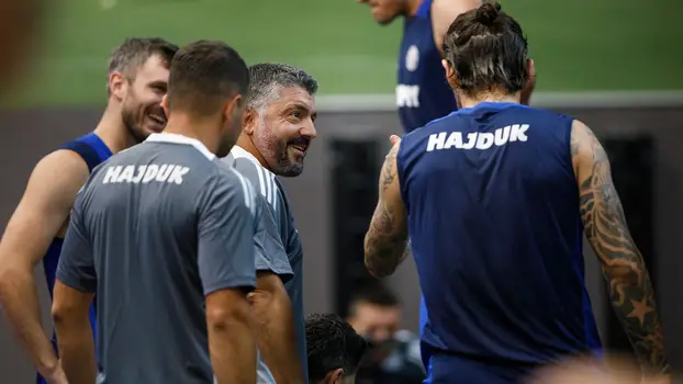Gattuso će u ponedjeljak imati priliku vidjeti svoj tim na djelu u trening utakmici u kojoj će Hajduk ugostiti mostarski Velež, trećeplasirani klub Premijer lige BiH koji se ovaj tjedan na startu priprema naprasno razišao s hrvatskim trenerom Deanom Klafurićem. Susret će se igrati u ponedjeljak i bit će zatvoren za javnost.