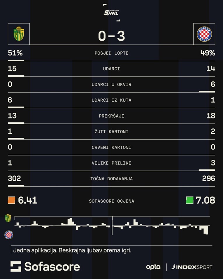 Dinamo je jučer pobijedio Osijek 2:1 te su Hajduk i on sad na 22 boda, na vrhu ljestvice. Zagrebačka momčad ima samo bolju gol-razliku. Istra je ostala na šestom mjestu s 12 bodova.