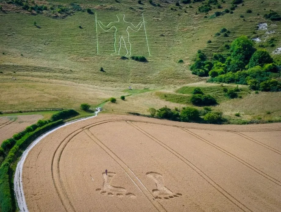 U blizini gigantske figure uklesane u brdo Windover Hill pod nazivom Long Man of Wilmington u East Sussexu u Engleskoj pojavio se novi misterij. Nedaleko od ove uklesane ljudske figure visoke 72 metara s dva koplja u ruci pojavili su se otisci dvaju monumentalnih stopala.