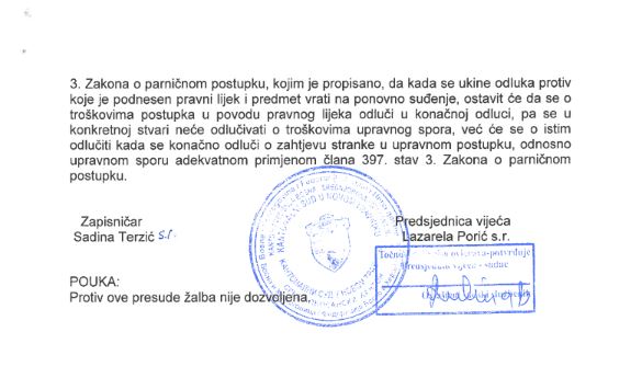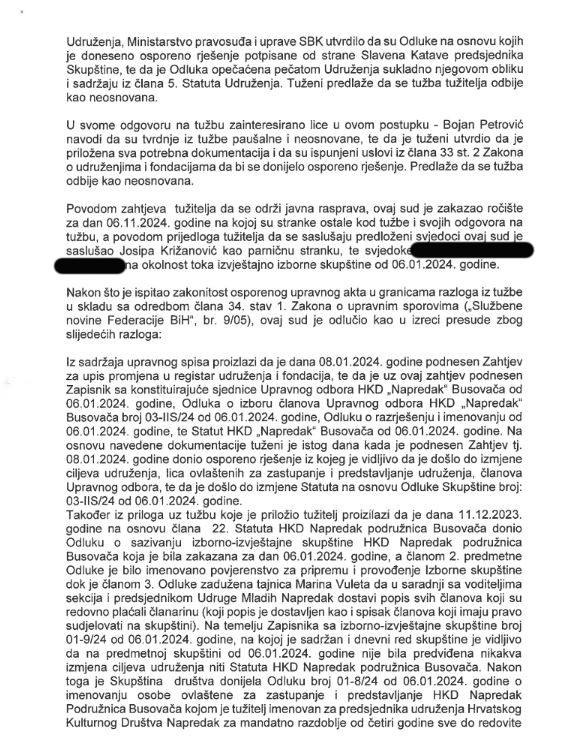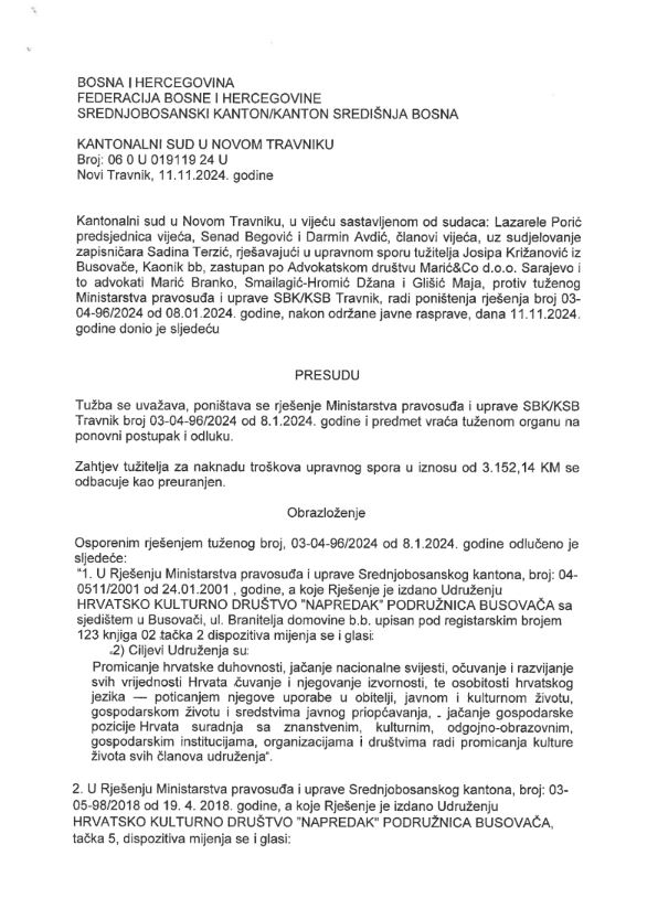 No čitav predmet prije svega završio je na stolu Upravnog odjeljenja Kantonalnog suda u Novom Travniku, koje je svoje ročište po pitanju oba upravna spora zakazalo 06.11.2024. Na samom ročištu pojavio se Josip Križanović kao tužitelj sa svjedocima, te pravni zastupnici Ministarstva Pravosuđa i Uprave, kao i pravni zastupnik Bojana Petrovića. Zanimljivo je kako se Bojan Petrović nije pojavio, nego je svoj odgovor na tužbu dostavio putem svog pravnog zastupnika.