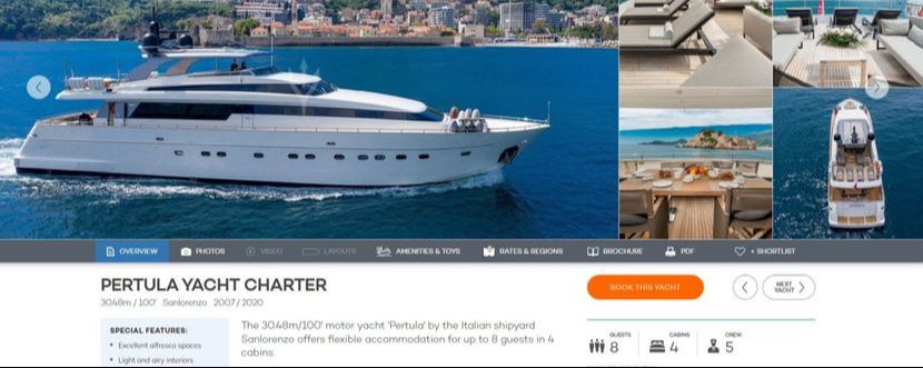 Ona se našla na jednom sajtu za izdavanje luksuznih jahti, po cijeni od 65.000 eura za nekoliko mjeseci u sezoni.