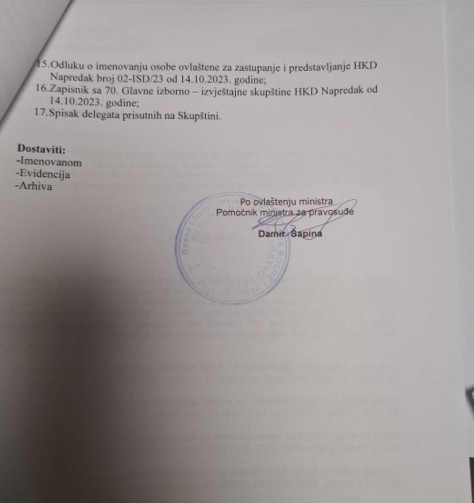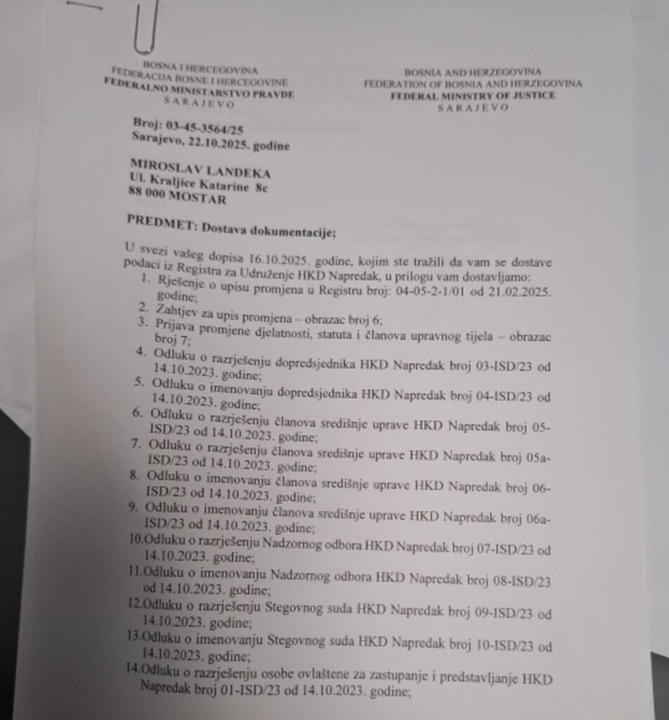 Danas je stigla i potvrda ovih navoda. Naime očito je da se ovakav potez Nikole Čiče očekivao te je 22.10. dopredsjedniku Miroslavu Landeki poslan službeni dokument Federalnog ministarstva pravde u kojem mu je dopušten uvid u dokumentaciju koja govori o ulozi pojedinih zastupnika. Tako je jasno naznačeno kako su u tom trenutku dopredsjednici Josip Križanović i Miroslav Landeka. Činjenica je kako zbog gore navedenog nitko nije imao pravo zaustaviti ovu dvojicu zastupnika u sudjelovanju na sjednici.