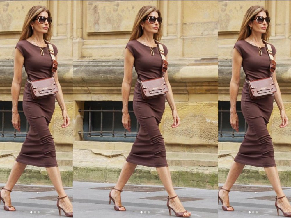 Kroj koji laska figuri pokazao se više nego dobrim izborom, a Pilar je ovu lijepu haljinu koja je prikladna i za posao, ali i neki večernji izlazak podignula cool detaljima: zlatnom ogrlicom i naušnicama, smeđom torbicom i klasičnim sandalama na petu.