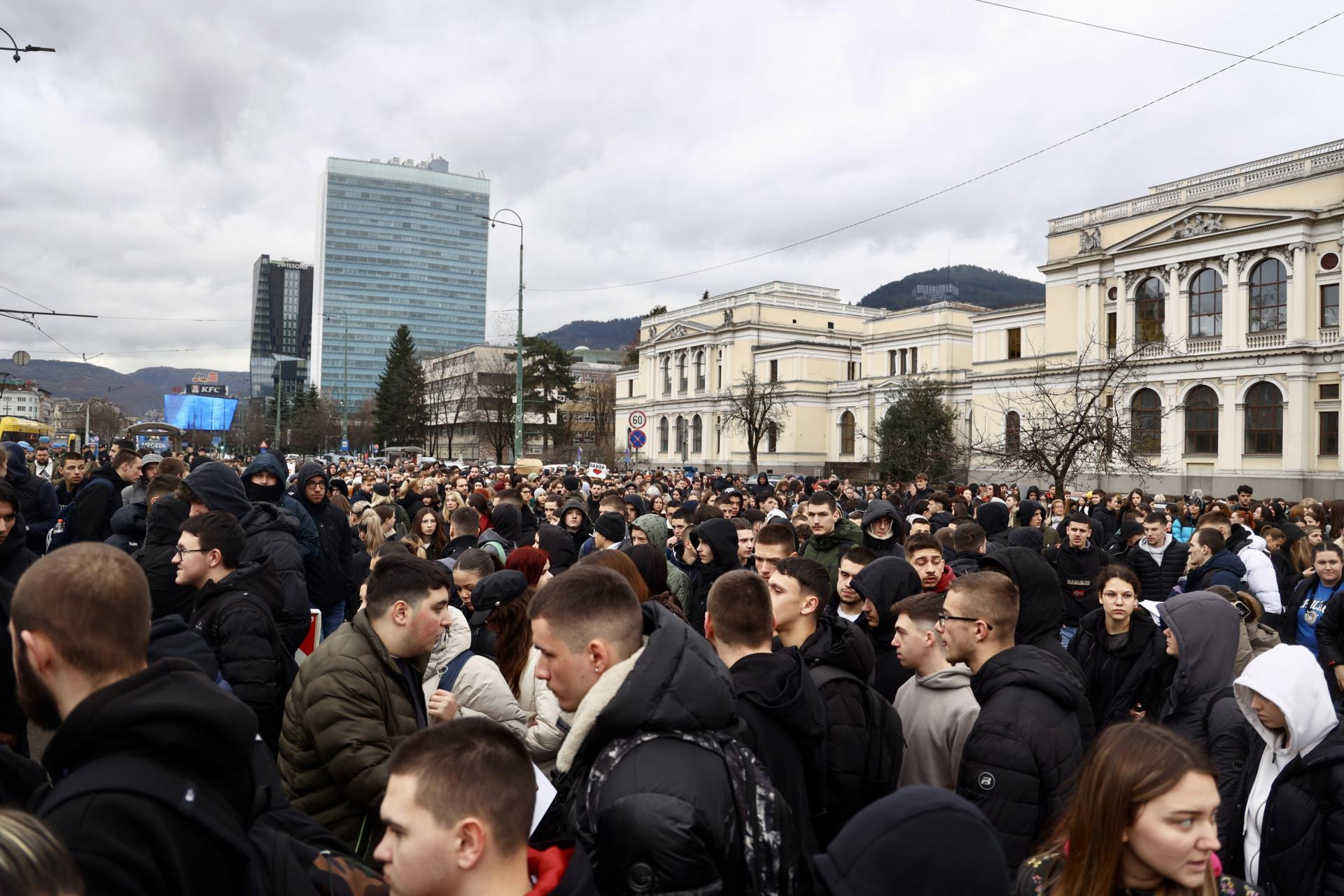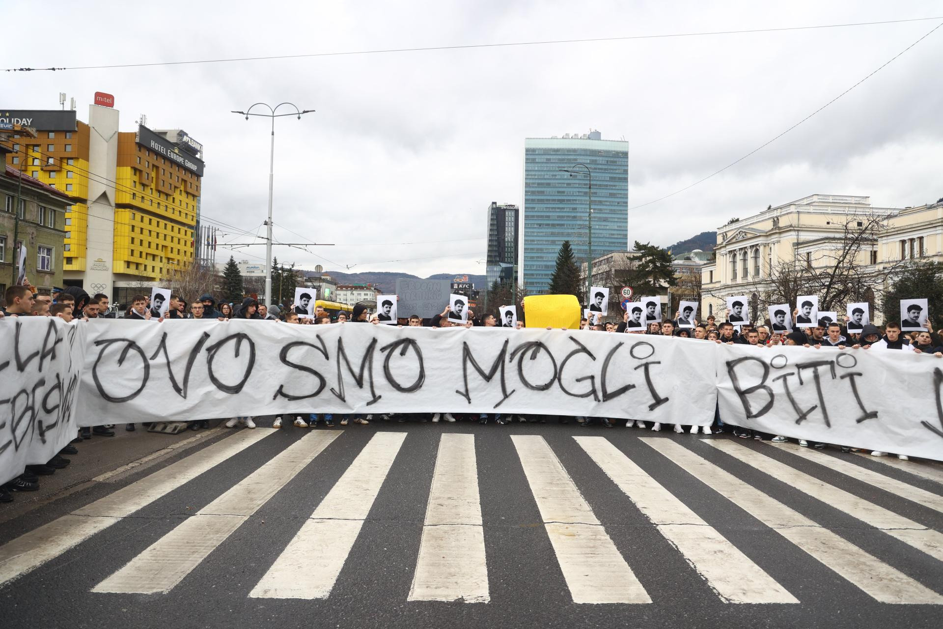 Među okupljenima na raskrižju između Zemaljskog muzeja i veleposlanstva SAD-a, koji su u znak prosvjeda blokirali promet, bio je veliki broj srednjoškolaca i studenata, a mnogi su bili kolege smrtno stradalog Erdoana Morankića iz Brčkoga, studenta druge godine sarajevske Akademije likovnih umjetnosti.