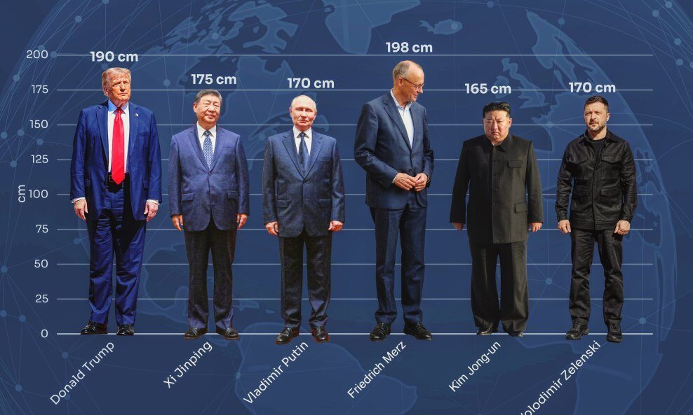 I u suvremenoj politici visina lidera nerijetko igra ulogu u načinu na koji ih javnost percipira – bilo kroz vizualnu dimenziju autoriteta, karizme ili medijske slike. Stoga, unatoč tome što se moć ne može mjeriti centimetrima, neki svjetski lideri koji se baš i ne mogu pohvaliti visinom, a brojke o tome kriju kao zmija noge, nerijetko se na službenim fotografijama prikazuju većima nego što jesu. No kada se svi nađu na istom mjestu – kao što je to bio slučaj na vojnoj paradi u Pekingu – tada razlike u visini ipak dolaze do izražaja.