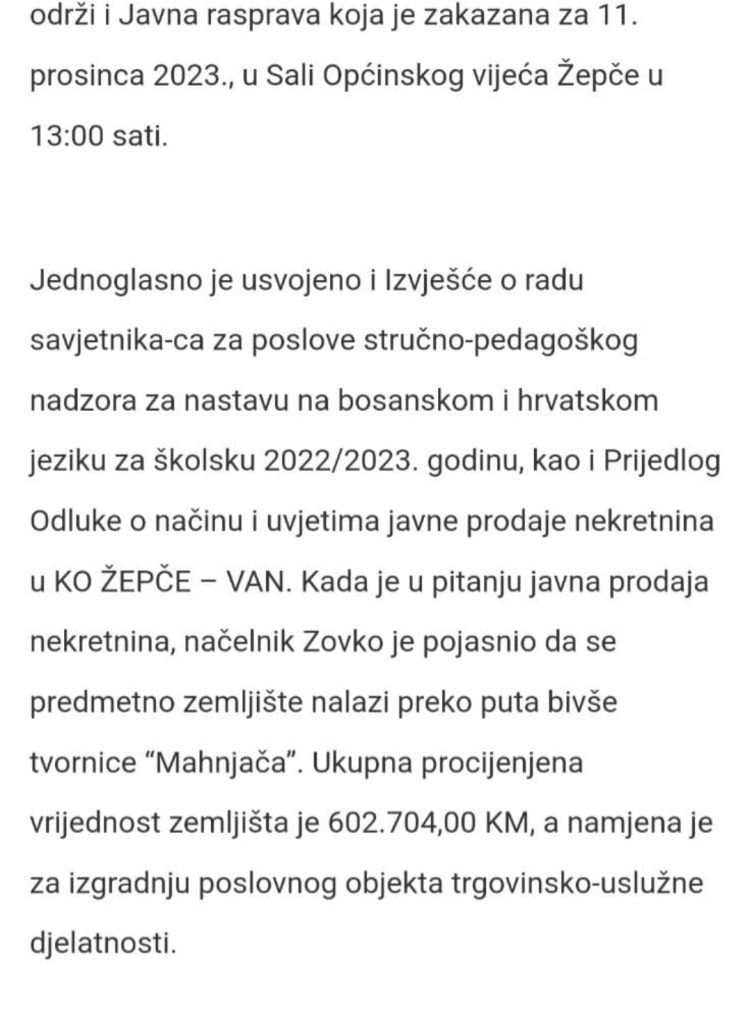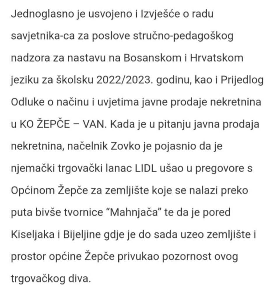 Pojavila se navodno i neslužbena informacija koja među Žepčacima ovih dana kruži, da će navedene parcele kupiti nepoznato poduzeće, a zatim istu parcelu prodati kompaniji LIDL vjerovatno po skupljoj cijeni?