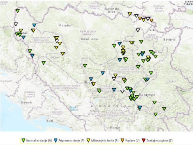 Kako navode iz Agencije, na područjima gdje ne postoje izgrađeni zaštitni vodni objekti na vodnom području rijeke Save, vanredno je hidrološko stanje u Unsko-sanskom, Zeničko-dobojskom, Tuzlanskom i Kantonu Sarajevo.