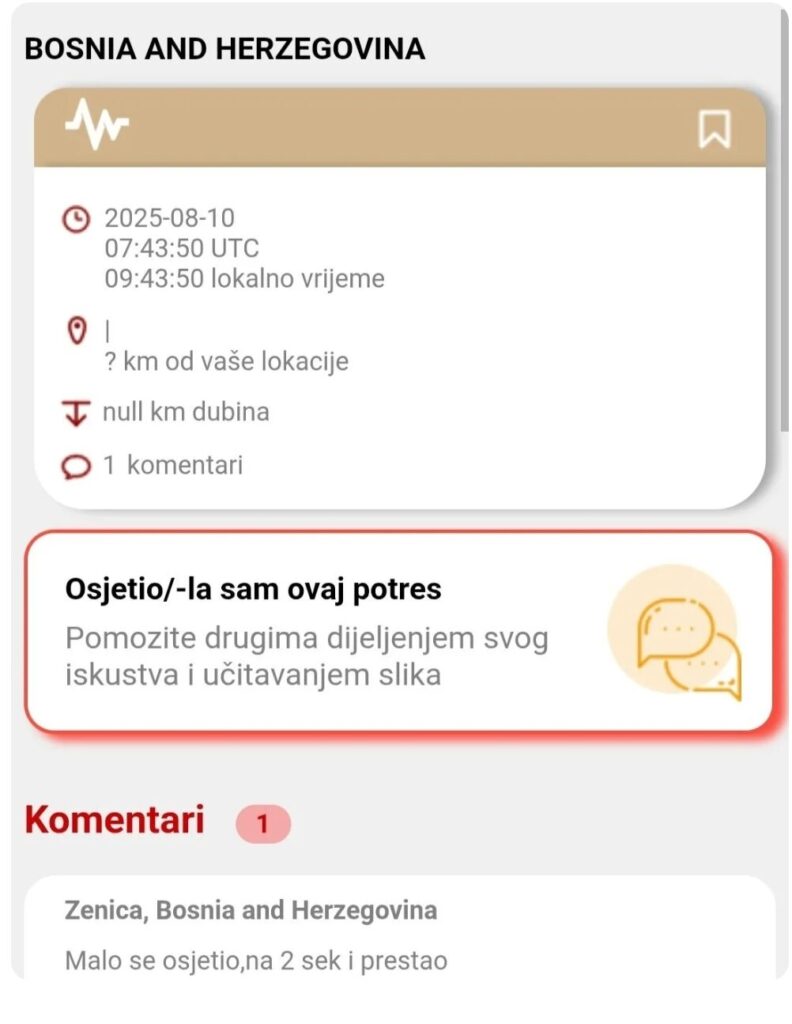 Na sreću, nema prijavljenih šteta na objektima, a potres je trajao svega nekoliko sekundi. Više informacija o epicentru i jačini očekuje se uskoro