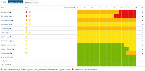 ‘Poduzmite mjere samozaštite i djelujte prema savjetima danim od nadležnih tijela. Rasprostranjene i izražene oluje su vjerojatne, pri čemu postoji opasnost za život od munja, tuče, bujičnih poplava i olujnog vjetra. Treba očekivati prekide u prometu te prekide u opskrbi energijom. Također je moguć značajniji prekid uobičajenih ruta prometovanja. Izbjegavajte putovanja koja nisu od iznimne važnosti’, upozoravaju iz DHMZ-a.