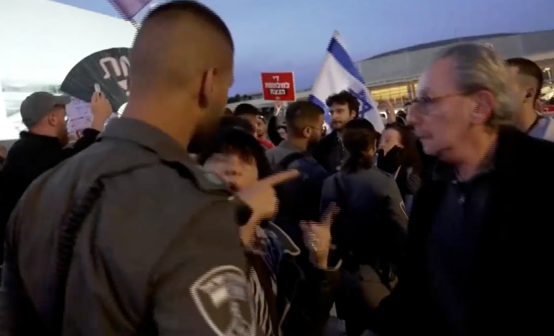 Nakon završetka prosvjeda u Tel Avivu, pripadnici granične policije viđeni su kako silom guraju sudionike koji su se kretali pločnikom. Policajci su pratili manju skupinu i više puta im naređivali da “nastave dalje”.