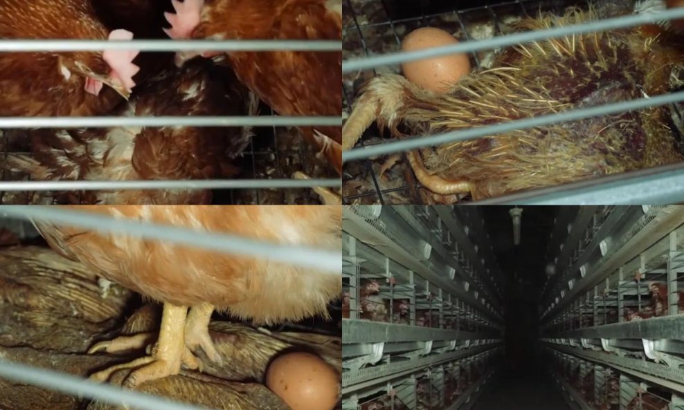 Na snimkama koje su tajno snimili aktivisti nevladine organizacije AETP vide kokoši s golim vratovima kako hodaju po leševima drugih kokoši, a na neka od njih položena su netom snesena jaja. Oko njih se kreću miševi i drugi glodavci, kokoši stoje na žičanoj mreži, a na površinama su vidljivi i debeli slojevi prašine, javio je portal javnog servisa RTVSlo.