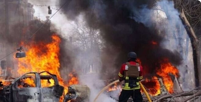 Tkačenko je rekao da je pogođeno šest gradskih četvrti, a požari su izbili u raznim zgradama, skladištima i automobilima, a fragmenti dronova padaju na tlo u različitim dijelovima grada.