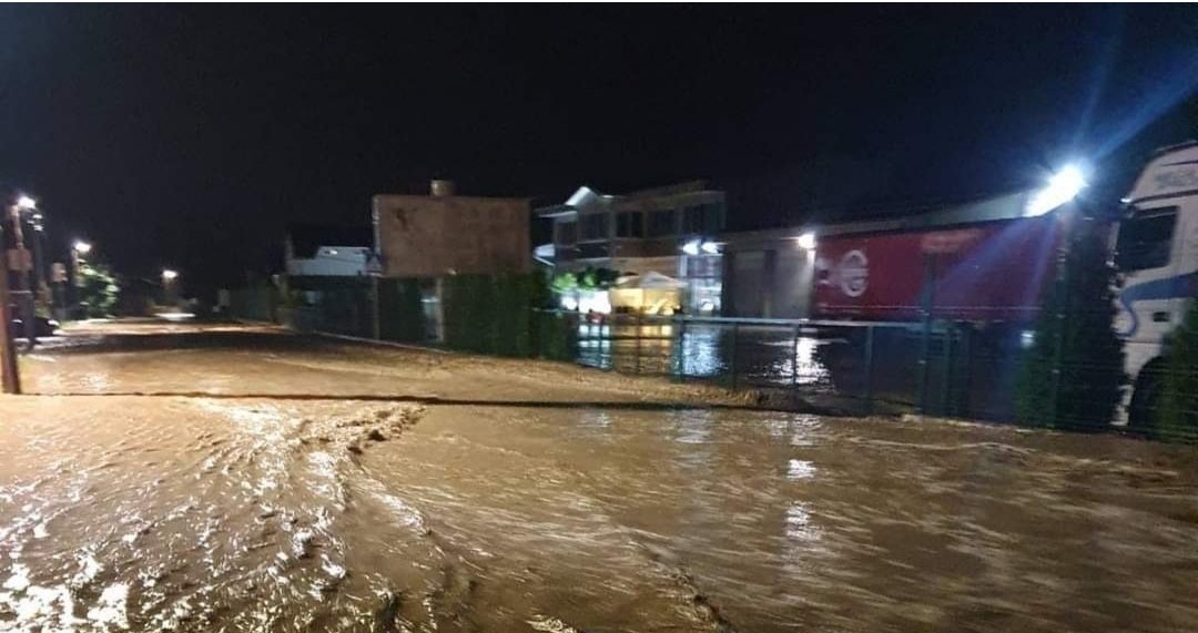 Kiša koja je padala izazvala je porast vodostaja rijeke koja se izlila na ulice i došla je do kuća.
