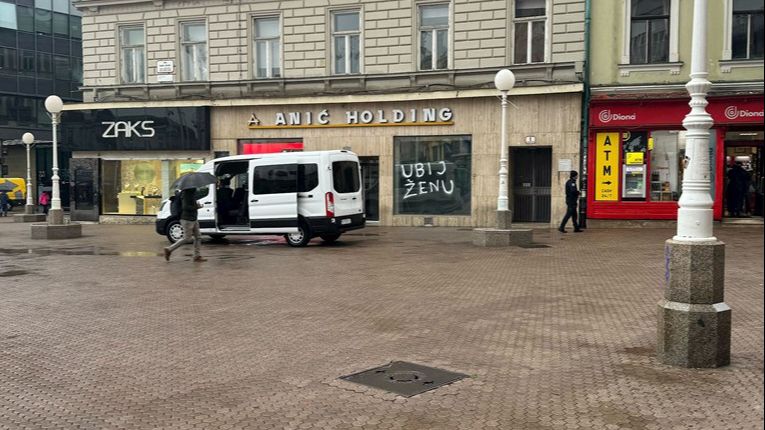 Natpis “Ubij ženu”, kako smo se i sami uvjerili, jutros i dalje stoji na zagrebačkom Trgu bana Jelačića.